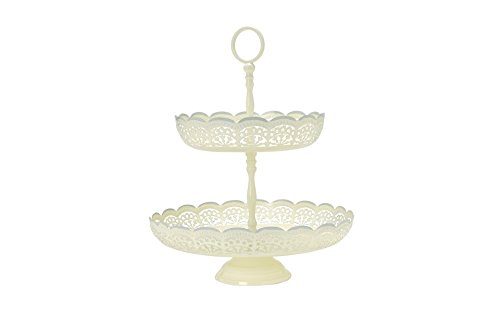 Cream Lace Edged 2 Tier Enamel Cake STAND