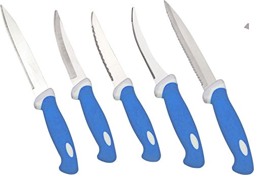Amiraj Double Mould Plastic Knife Set, Set of 5, White/Blue