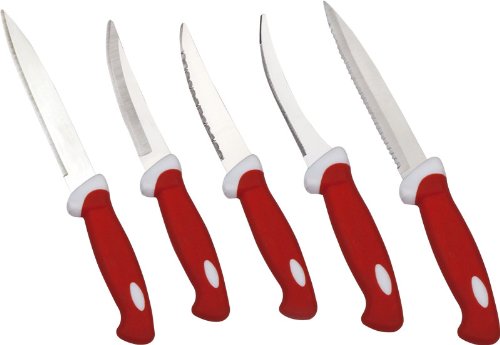 Amiraj Double Mould Plastic Knife Set, Set of 5, White/Red