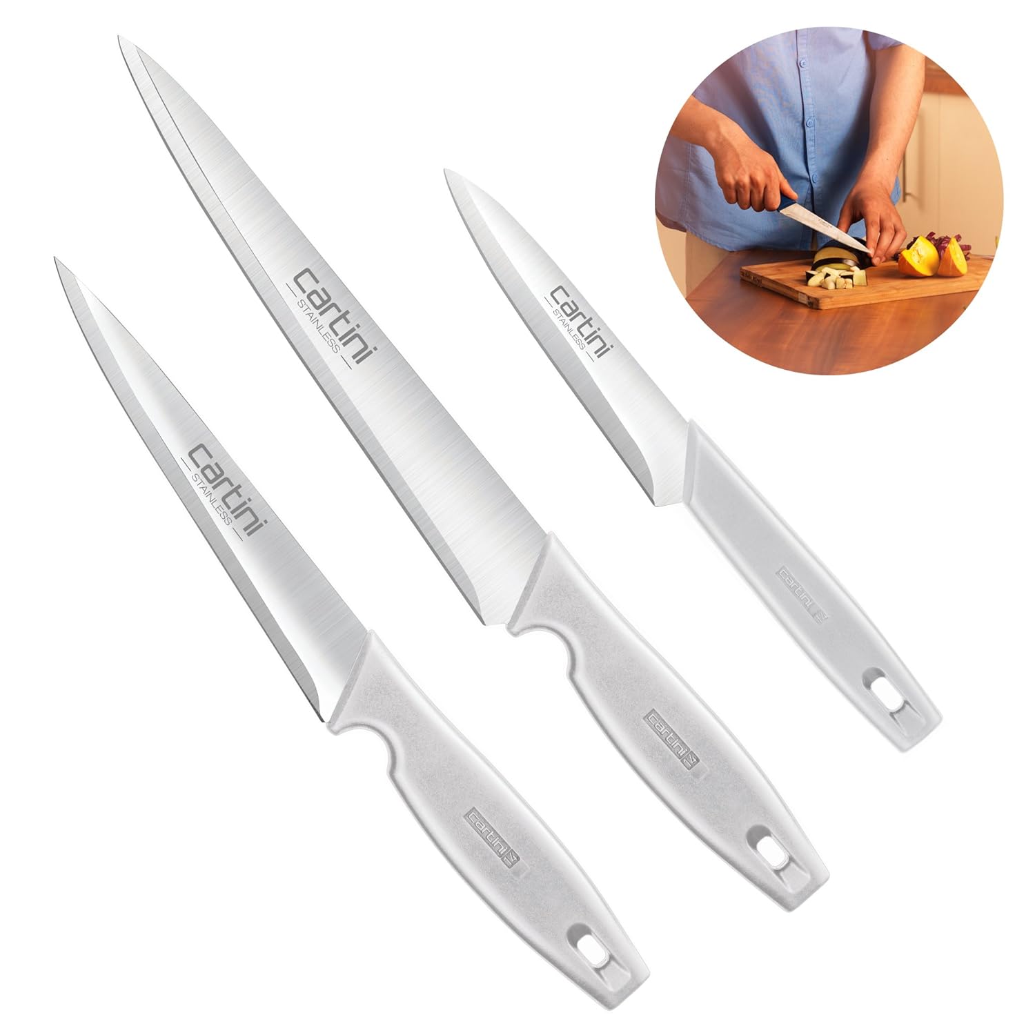 Cartini Godrej Kitchen Knives kit, 3 Pc Set Set, Stainless Steel (AISI 420J2), White