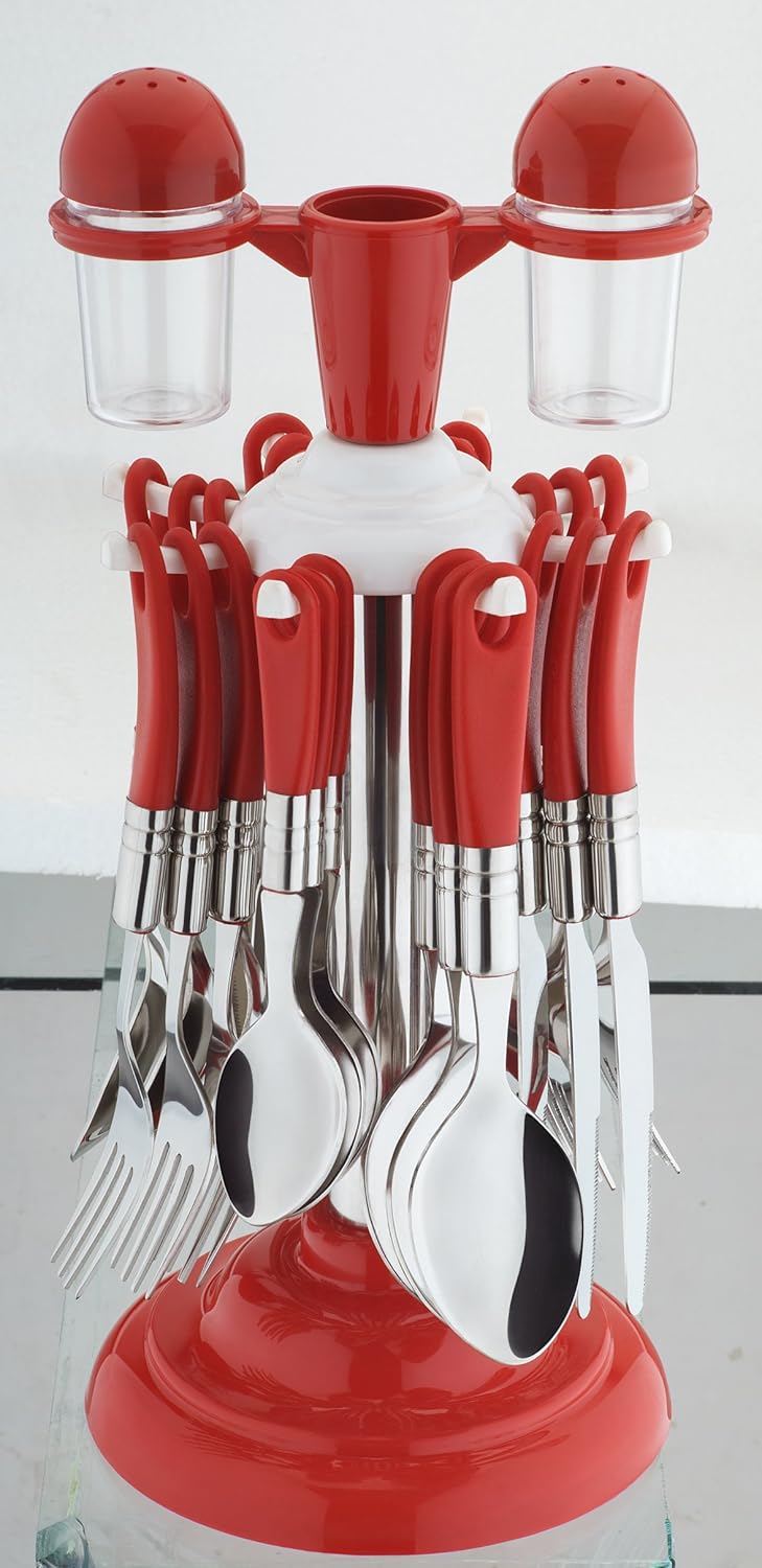 Cutlery Set Kunj With Stand Made from stainless steel & Virgin Plastic Pack of 24 Pieces-KERED