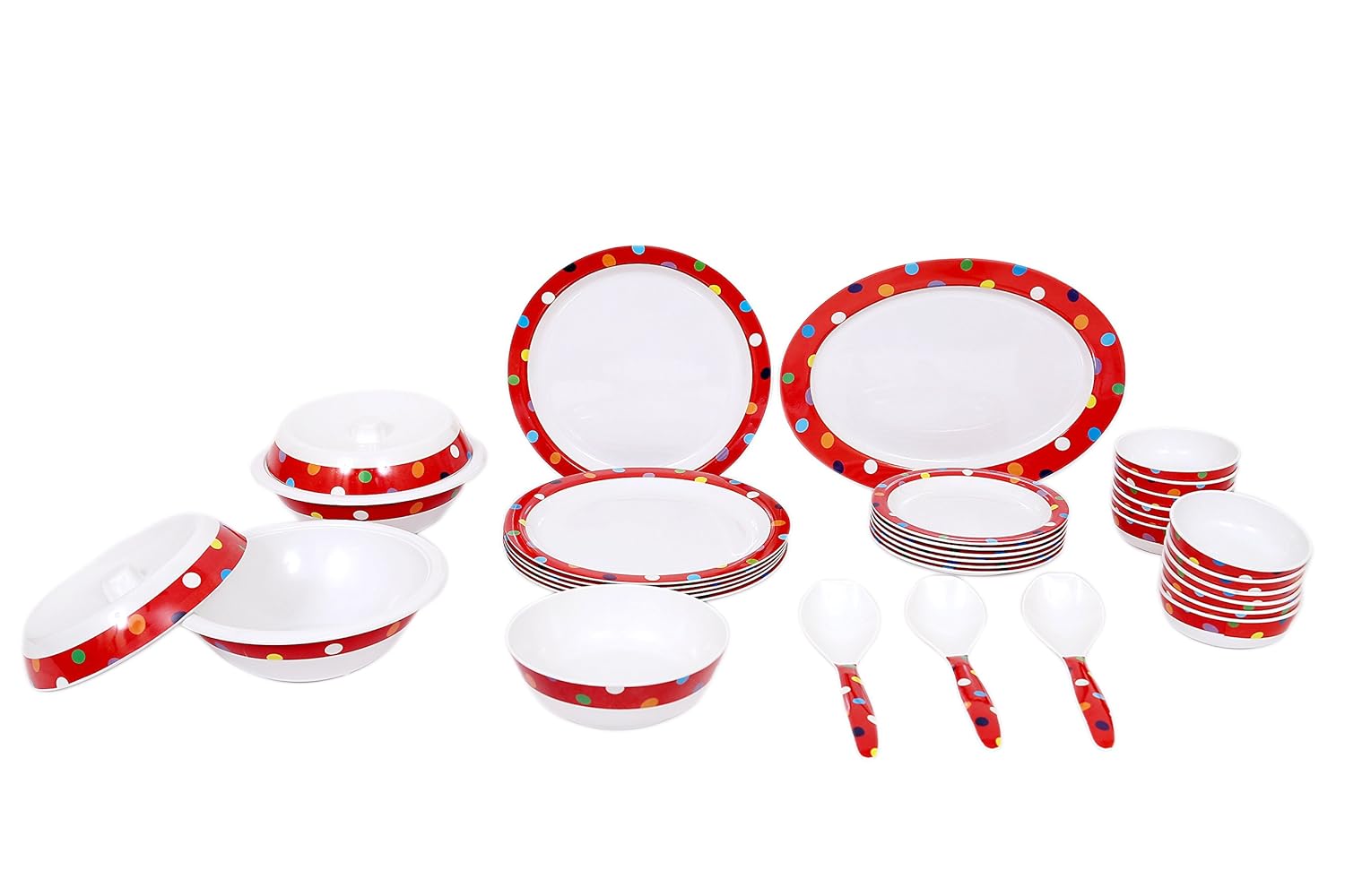 Dinner Set Contents 33 Pcs : Dinner Plate 10.5 " - 6 Pcs / Small Plate 7.5" - 6 Pcs / Curry Bowl 4.5" - 12 Pcs /All Purpose Bowl 7.0" - 1 Pcs / Donga Cover - 2 Pcs / Donga Base - 2 Pcs / Service Spoon - 3 Pcs / Rice Plate - 1 Pcs