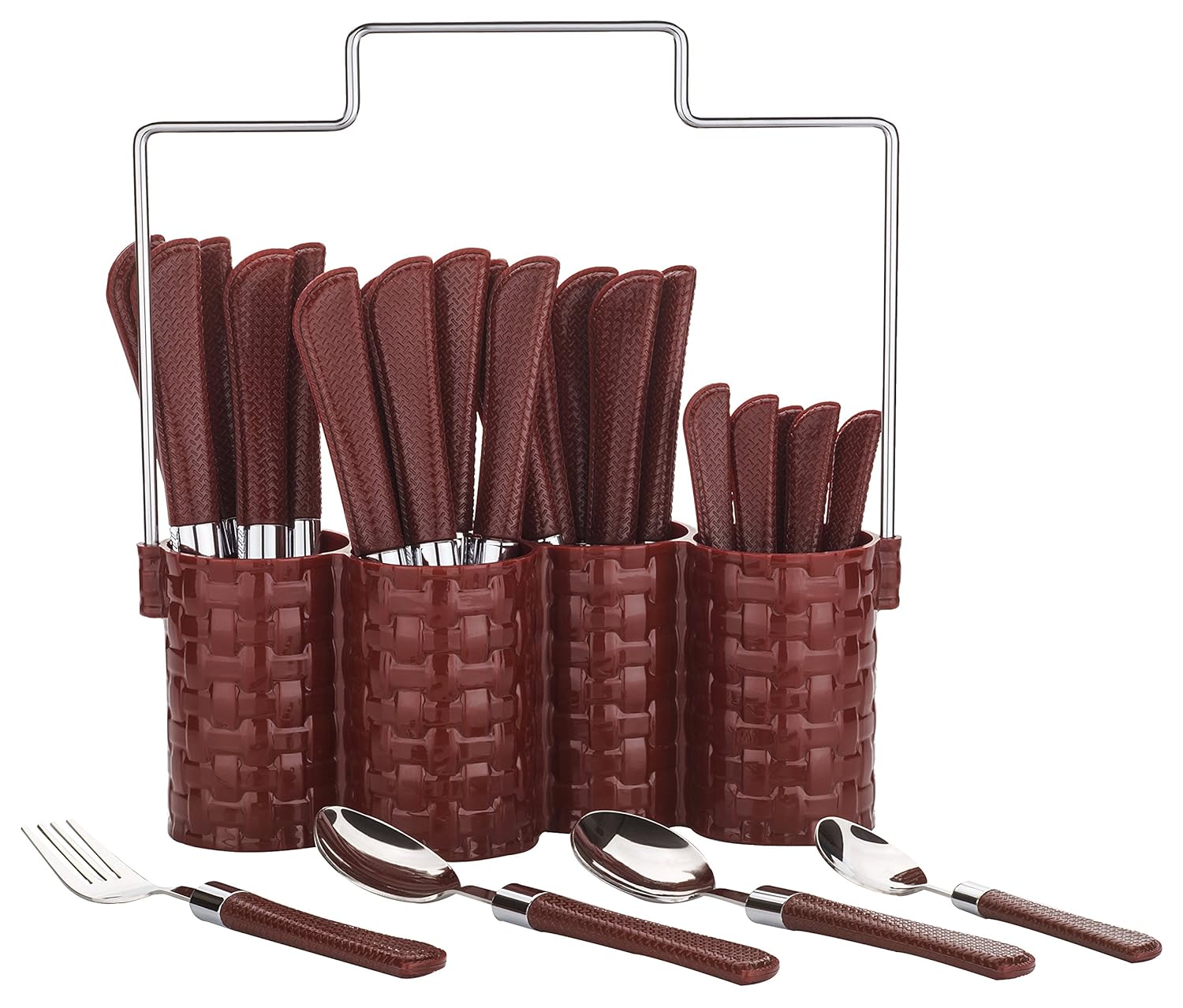 Package Contents: 6 Dessert spoon, 6 soup spoon, 6 tea spoon, 6 fork, 1 stand