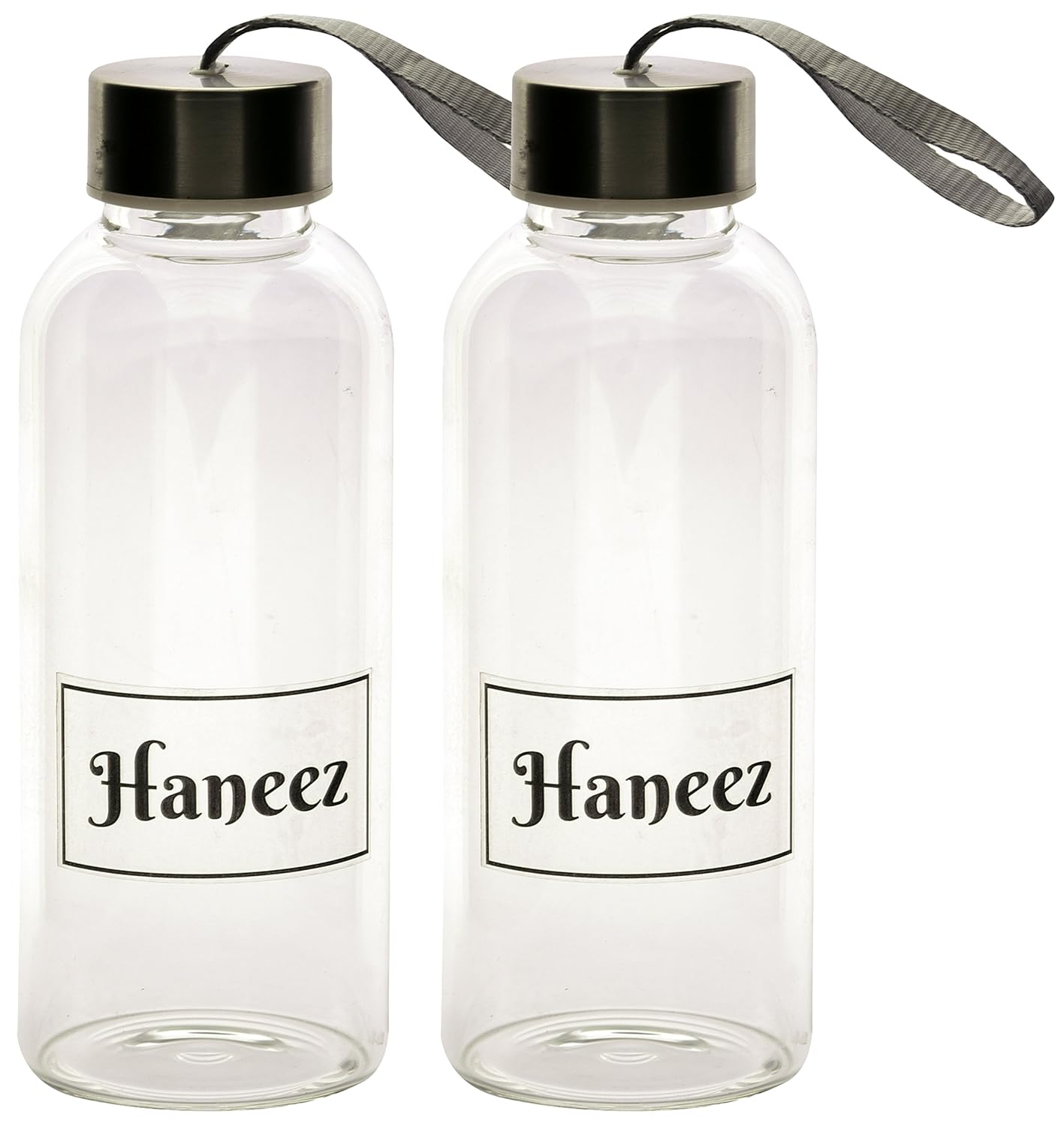 Drinking Glass Water Bottle Pack of 2, For Beverages and Juices - Home and Office Use, Stainless Steel leak Proof Caps With Carrying Loop