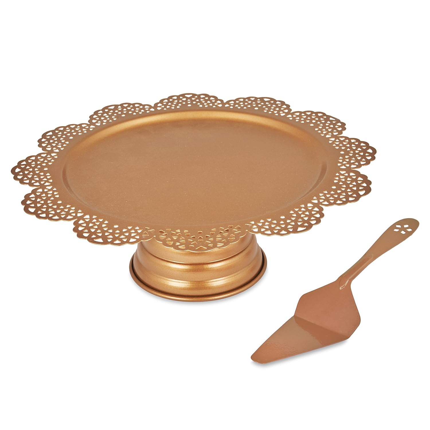 ELAN Scallop Cake Stand With Cake Server, Wedding Cake Stand, Cupcake Stand for Party, 13 Inch, Metal, Copper color