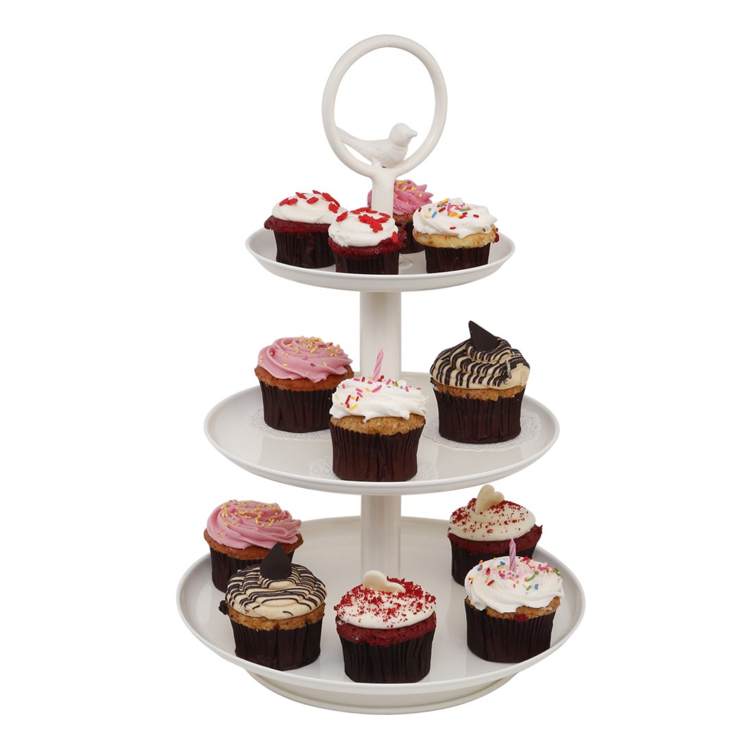 ELAN Tweet 3 Tier Stacked Cake Cupcake & Dessert Stand, Cupcake Display Stand, Party Cupcake Tower, White