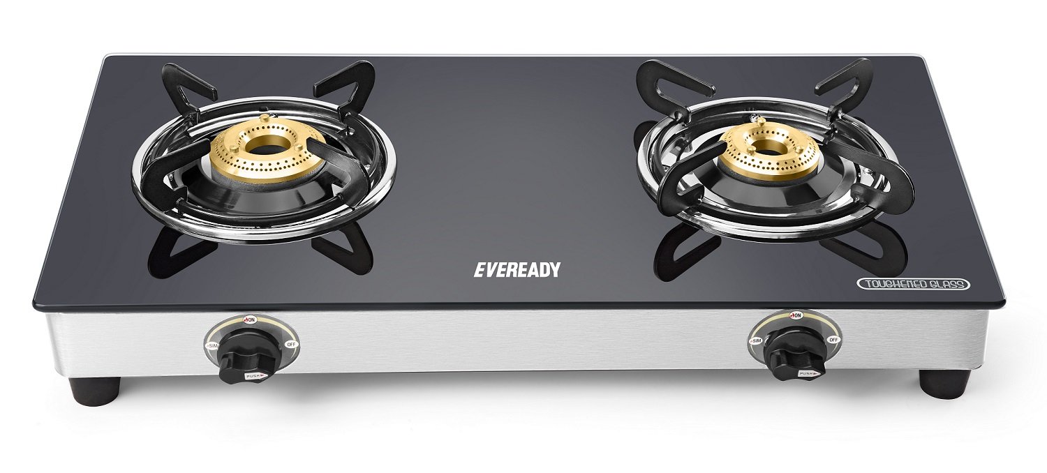 Eveready GS TGC2B Stainless Steel 2 Burner Glass-Top Gas Stove, Black