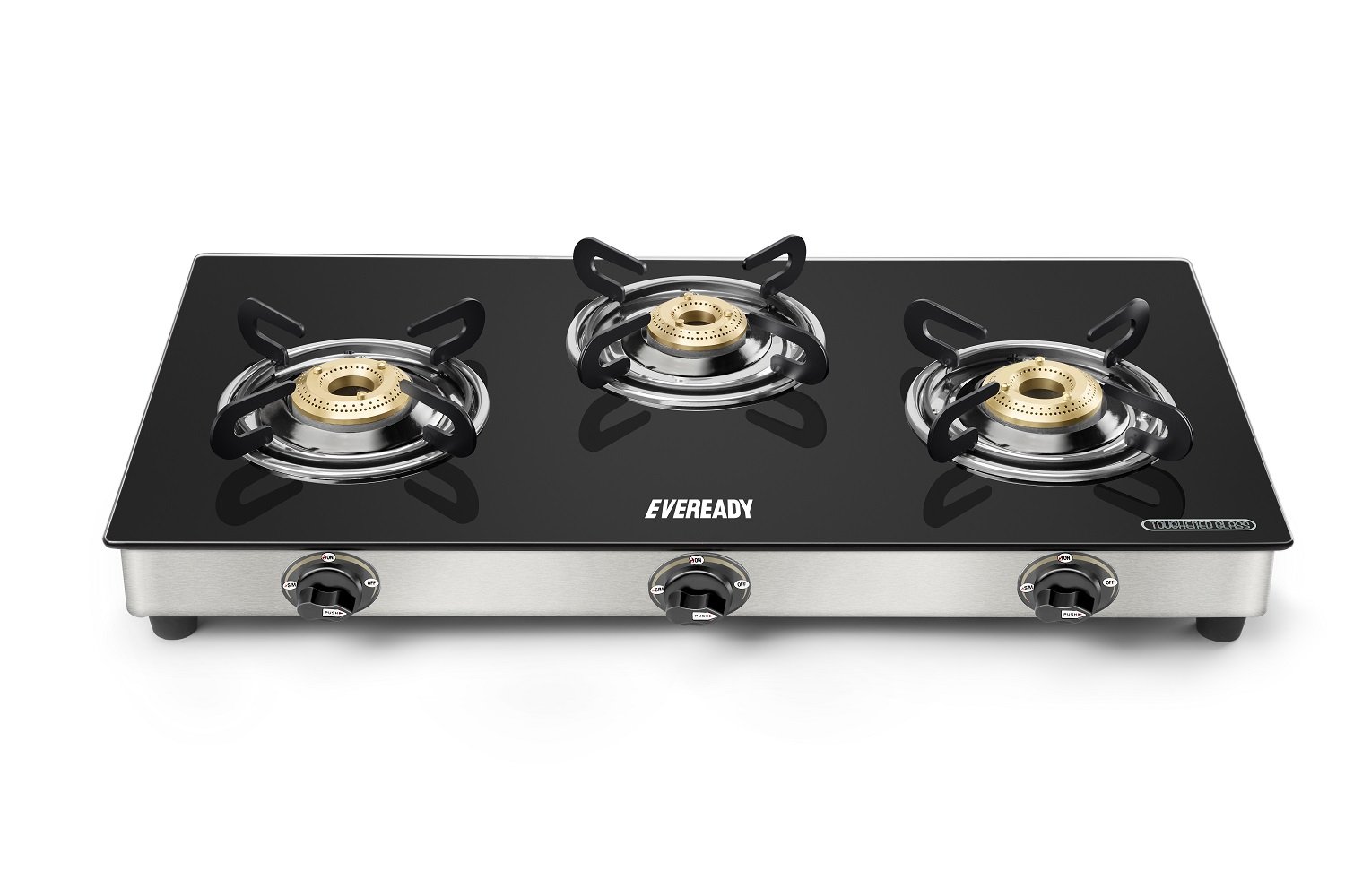 Eveready GS TGC3B Stainless Steel 3 Burner Glass-Top Gas Stove (Black)