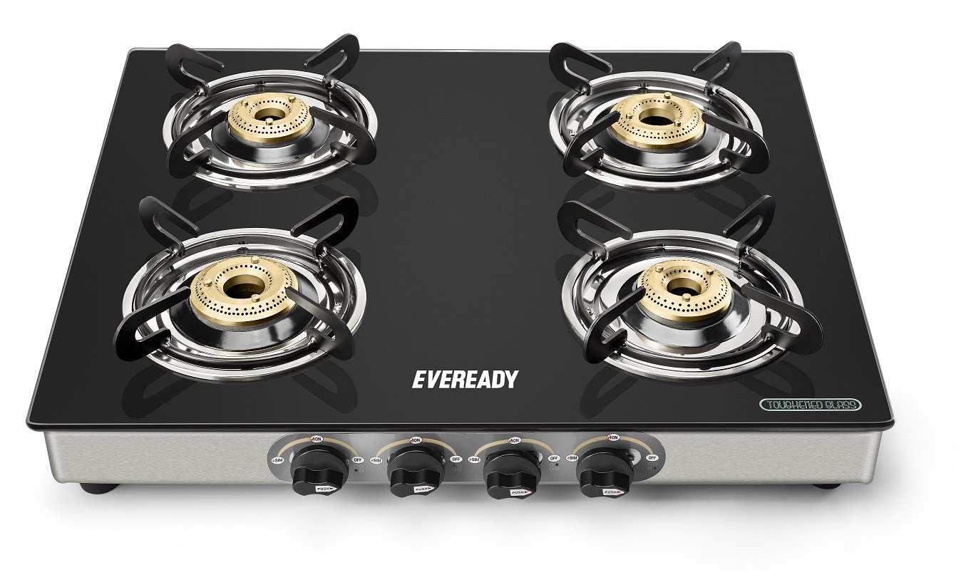 Eveready GS TGC4B Stainless Steel 4 Burner Glass-Top Gas Stove, Black