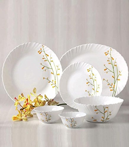 Package Content: 6 Full Plates, 6 Quarter Plates, 6 Vegetable Bowls,6 Soup Bowls, 6 Soup Spoons, 2 Casseroles 2 Lids for Casseroles and 1 Rice Plate