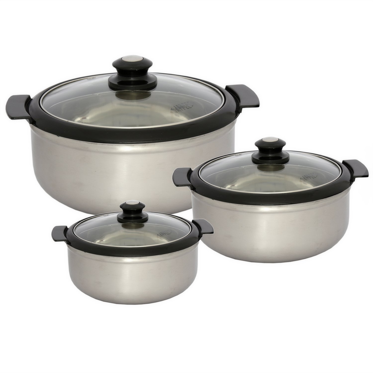 Jaypee Plus Florence Stainless Steel Casserole Set, 1.2 Litres, Set of 3, Black