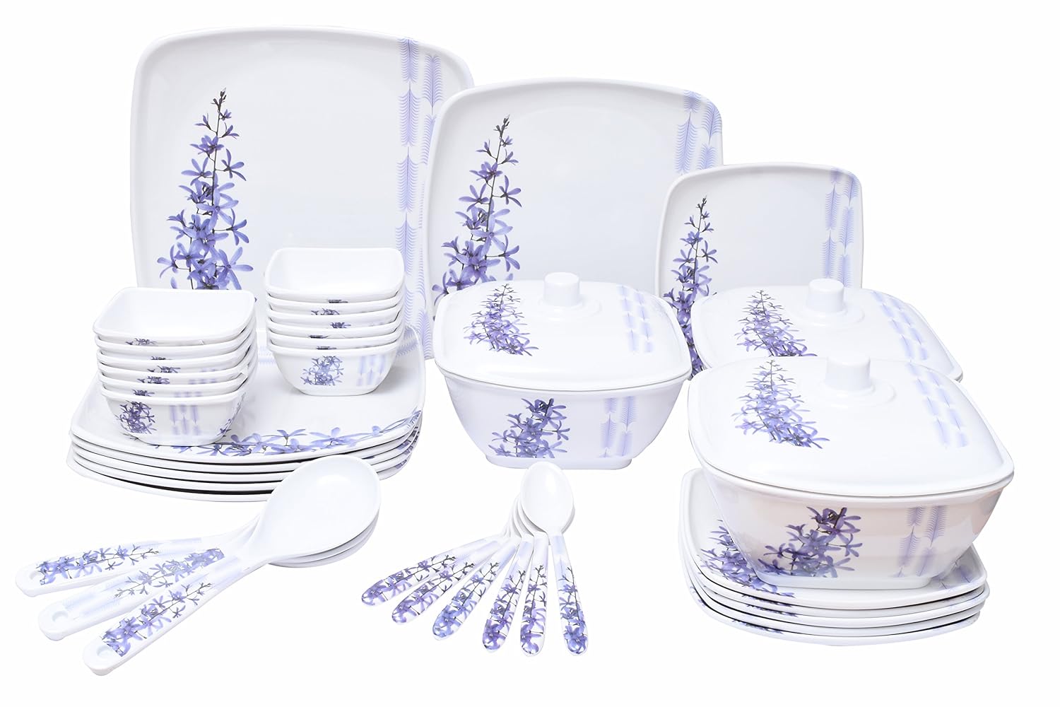 Flowerware Melamine Dinner Set of of 40 pieces, square shaped, standard size, unbreakable with everlasting shiny print