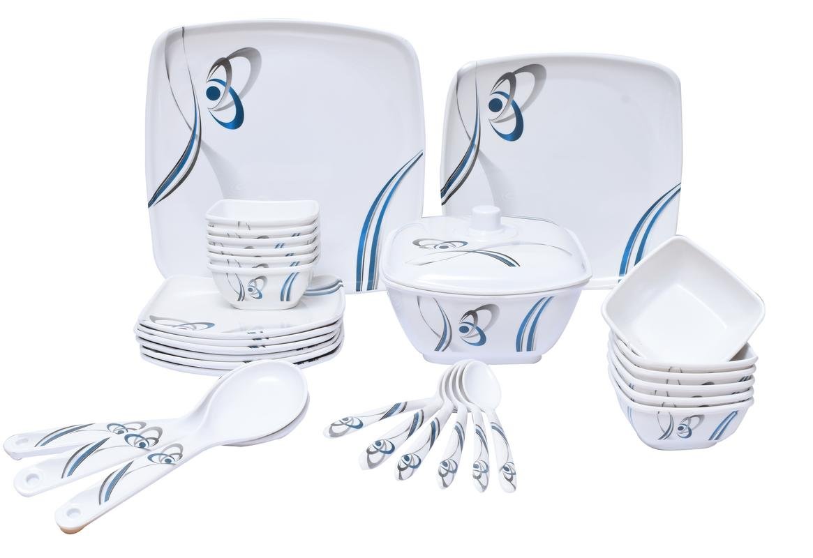 Flowerware Melamine Dinner Set of of 40 pieces, square shaped, standard size, unbreakable with everlasting shiny print
