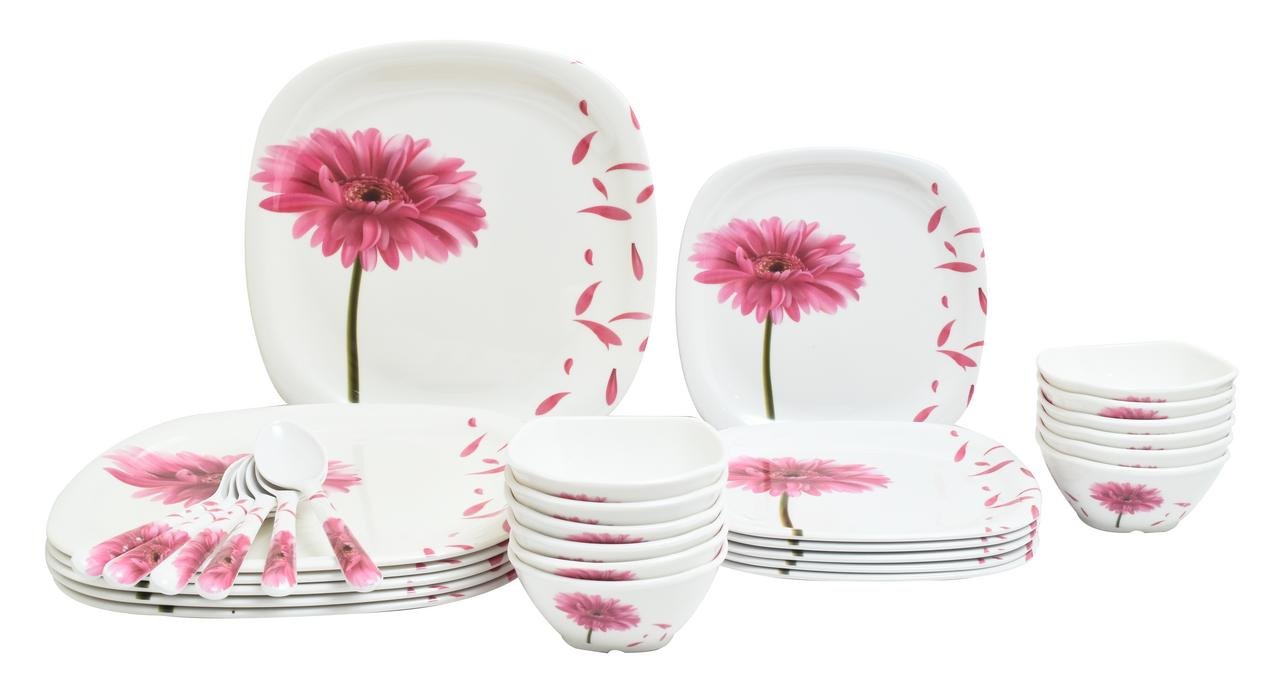 ,Dinner Set is made of the superior quality of Melamine with attractive and beautiful Floral print ,The texture and design of this Dinner set is same as shown in the Image. The floral print motifs pave the way for a rich and classy dining experience and it is very easy to wash.