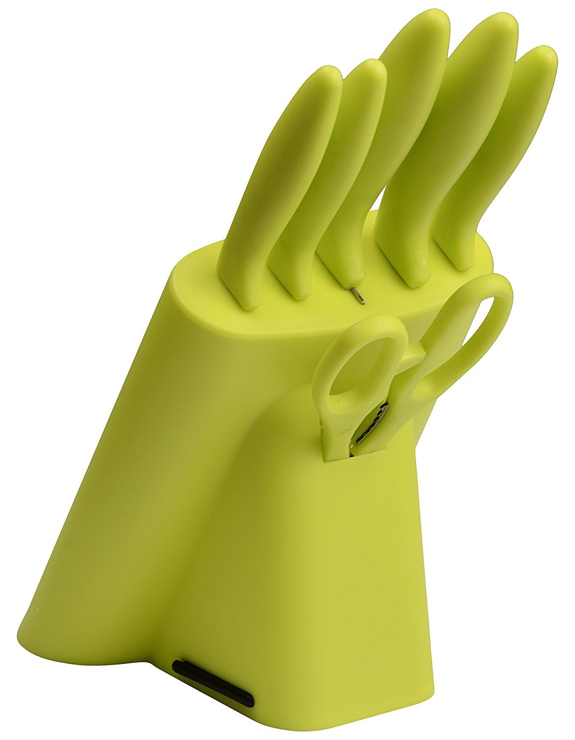 GTC 7 Pieces Kitchen Knife Set- Kitchen Knives, Scissors and Plastic Stand PA015 (Green)