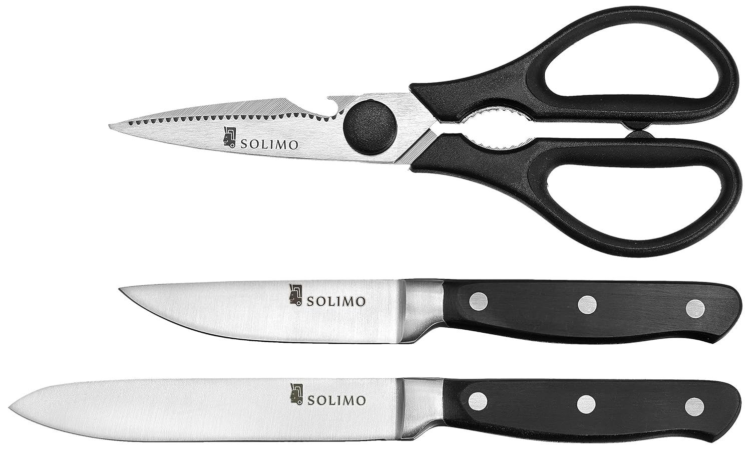 Solimo Premium High-Carbon Stainless Steel Detachable Kitchen Shears and 2 Kitchen Knife Set