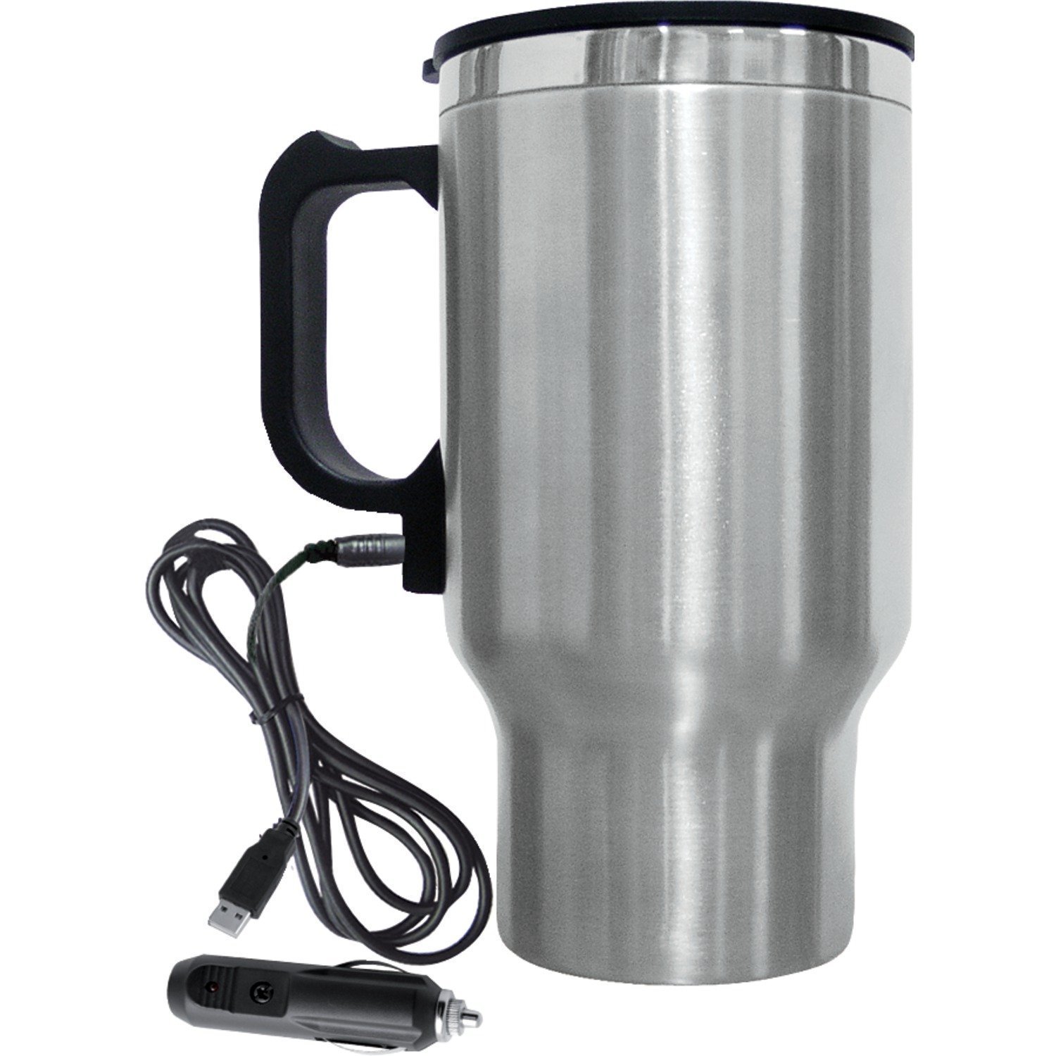 Stainless steel 12V Car mug sits snugly in your car cup holder and plug .