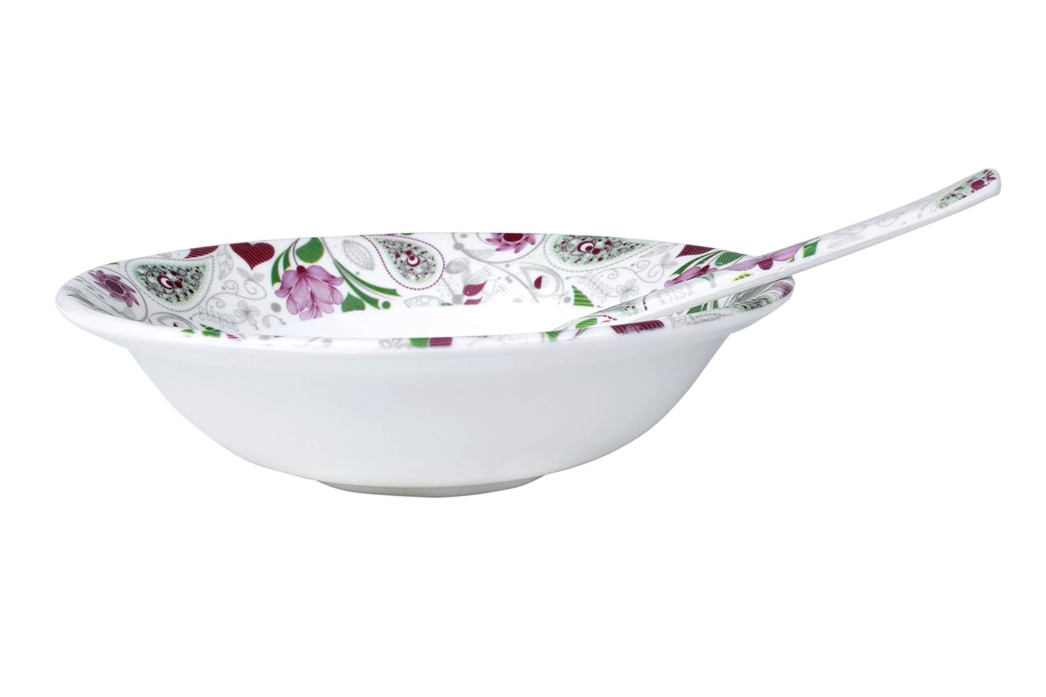 Mehul 12 Pcs Snack Bowl Set (6 Bowls & 6 Spoon) Bowl Size - 16.5 cm, Multi Colour - Orchid Design