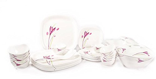 Package Contents: 6-Pieces Dinner Plate, 6-Pieces Small Plate, 6-Pieces Veg Bowl, 6-Pieces Small Bowl, 2-Pieces Serving Bowl, 2-Pieces Lid, 1-Piece Serving Platter and 2-Pieces Serving Spoon