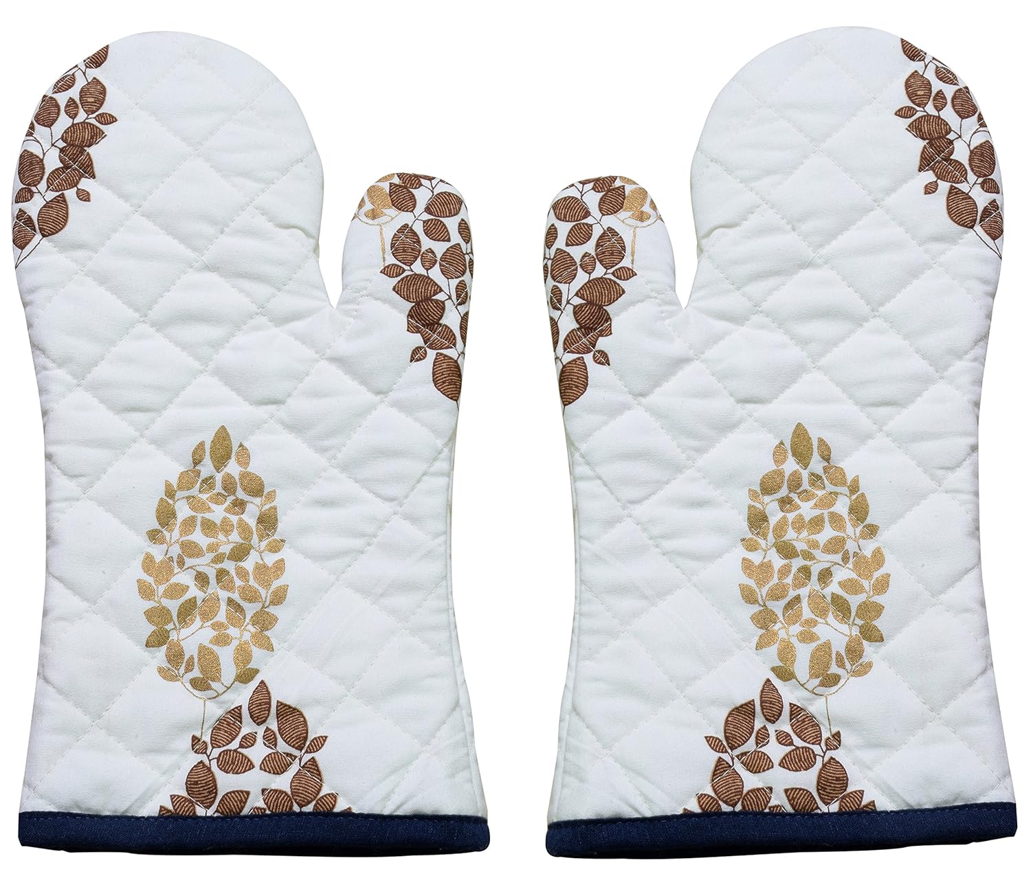 Miyanbazaz Textiles 100% Cotton Padded Oven Gloves Pack of 2, (Gold&Brown, 2)
