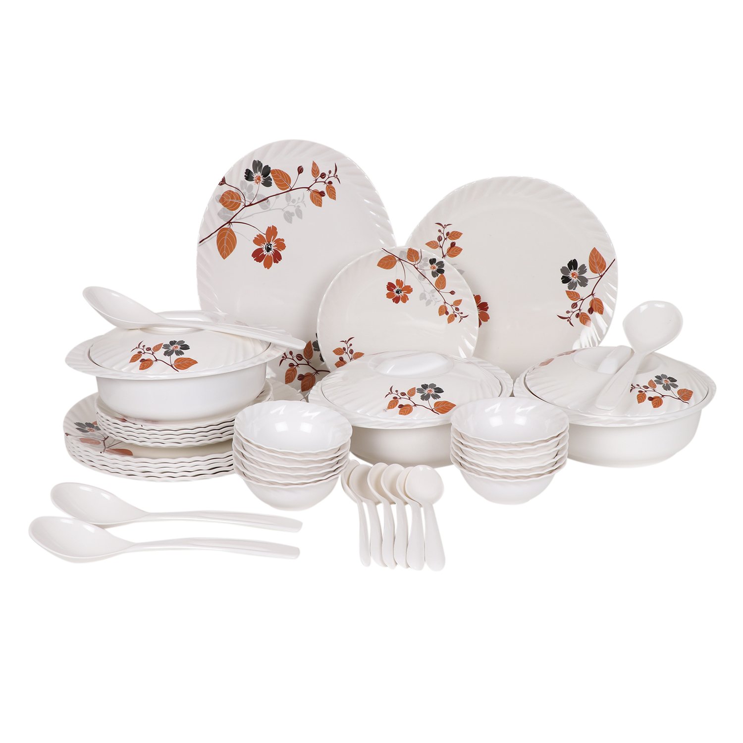 This 41 piece dinner set is complete in itself and can serve a family of up to 6-8 members. It is one of our the premium quality product. Our delivery packaging makes the product break proof. A product par excellence in it's quality and design with high grade melamine which is microwave safe.