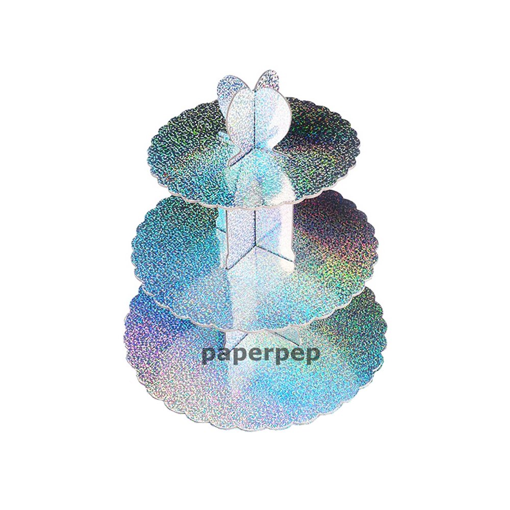 Paper Pep Bakery Collection Cake Platters Cardboard Silver 3 Layer Cup Cake Stand