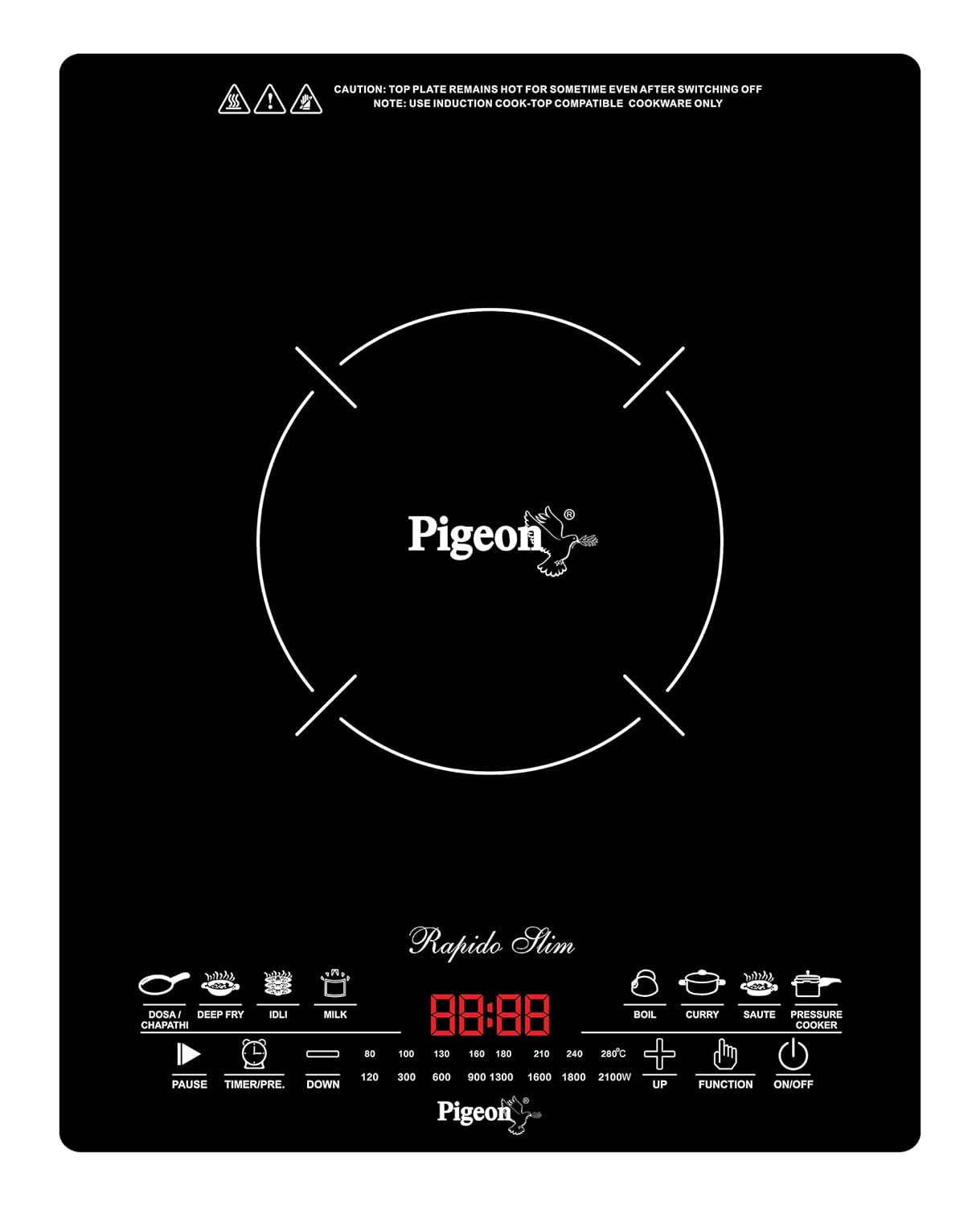 Pigeon Rapido Slim 2100-Watt Induction Cooktop, Black