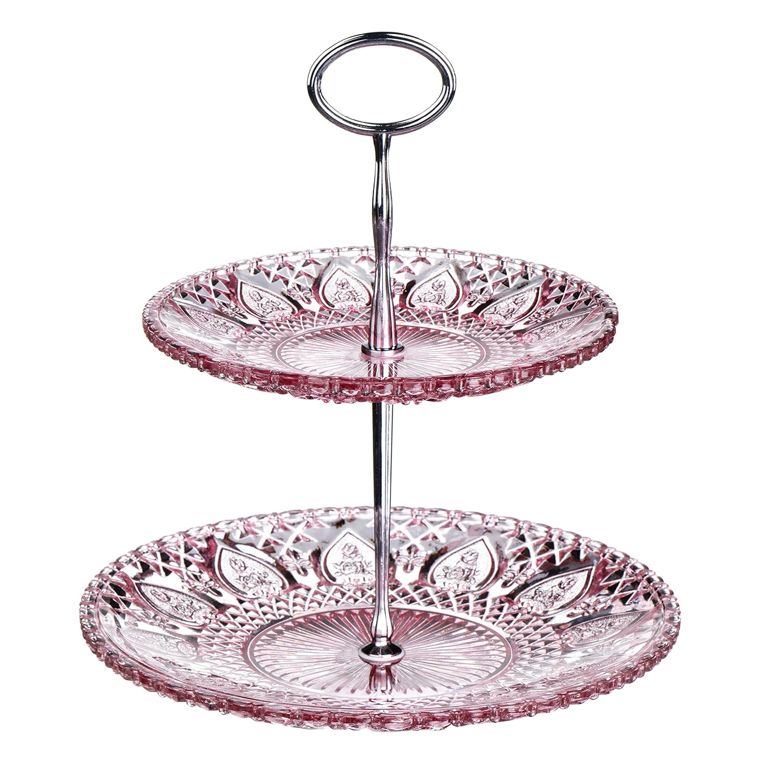 Pink, 2 Tier: Premier Housewares 2-Tier Glass Cake Stand - Pink