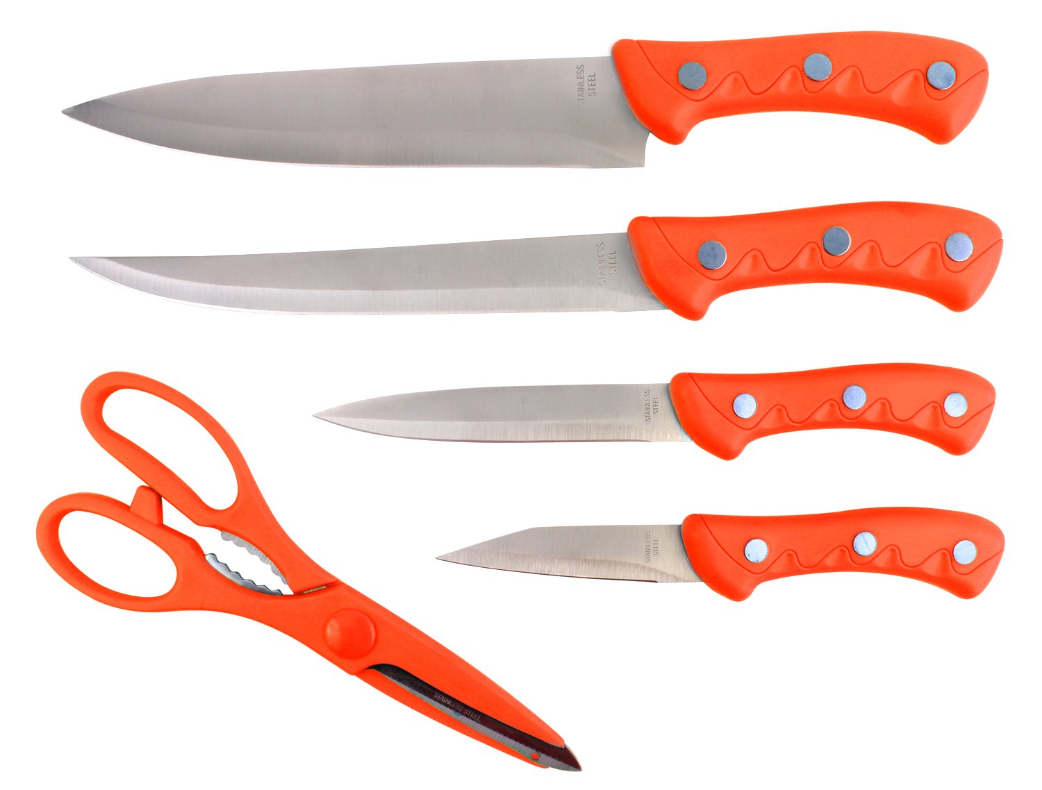 Premium Quality K16005A Cookstyle 5Piece Stainless Steel Kitchen Knife Set with Handy Chopping Board (Orange)