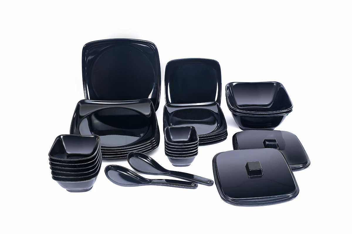 Roni Wares 30 Pcs Dinner Set(Double Coating),Black