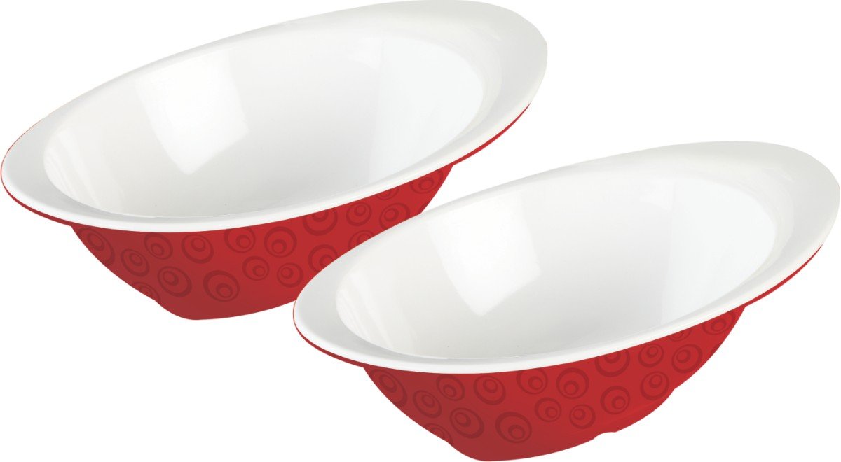 Servewell Geo Oval Melamine Bowl Set, 23cm, Set of 2, Red/White