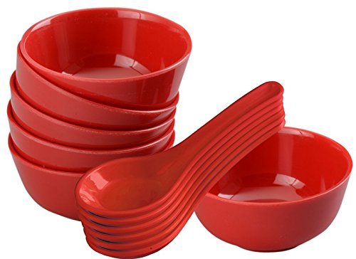 Servewell Round Soup Bowl with Spoon Set, Red, 12-Pieces