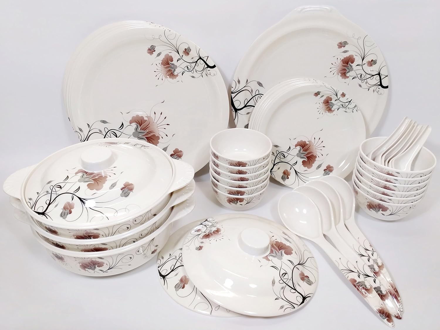 Seven Pi Brown Mallow Printed Exclusive Melamine Quality Dinner Set, 41-Pieces