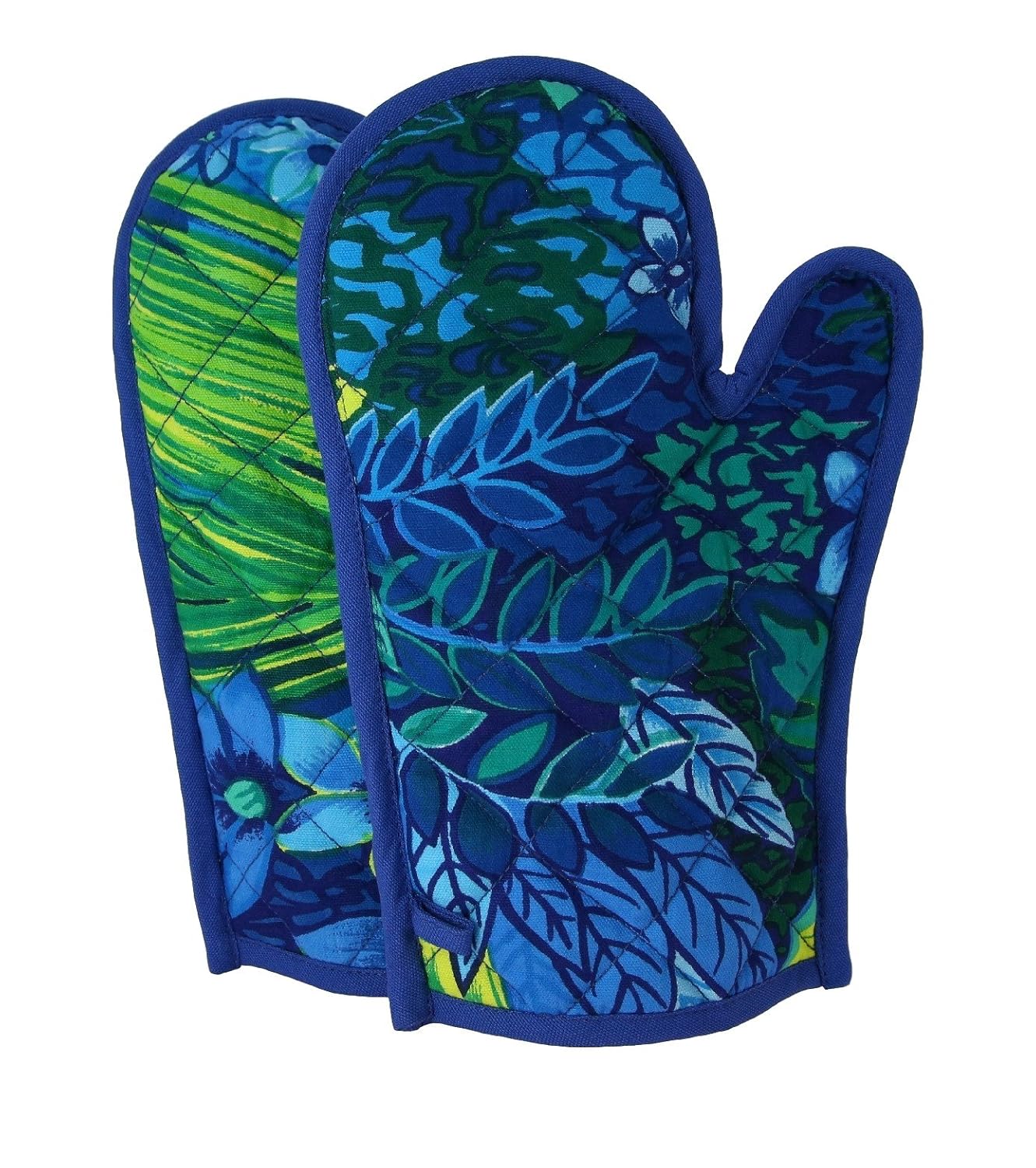 Shalinindia Cotton Oven Mitts Printed Set of 2 Quilted Cooking Gloves,OG02-2404,Blue,8 x12 Inch
