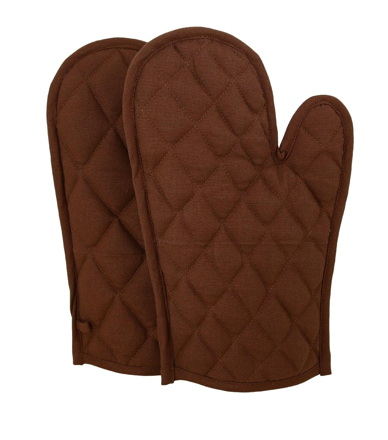 Shalinindia Cotton Oven Mitts Set of 2 Quilted Cooking Gloves,OG02-9009P,Brown,8 x12 Inch