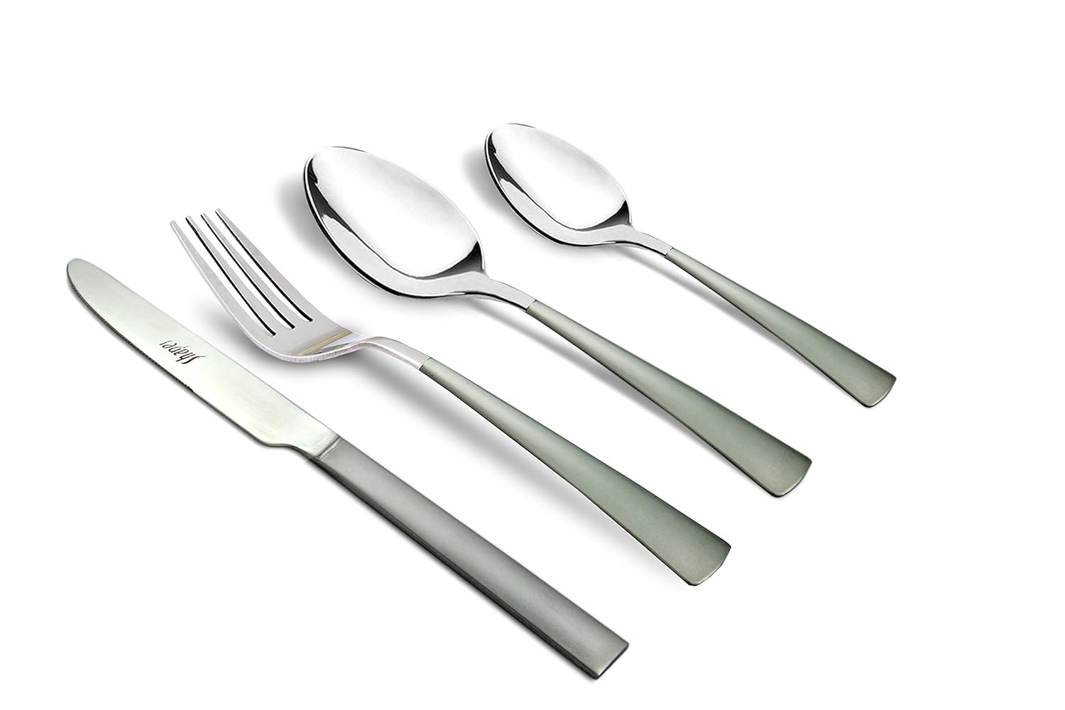Package Content: 6 Pcs Dinner Spoon, 6 Pcs Dinner Fork, 6 Pcs knives & 6 Pcs Tea Spoon.