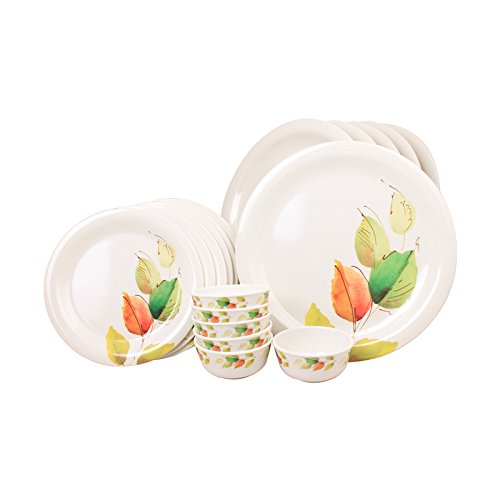 WHITE GOLD 18 PCS MELAMINE FULL DINNER SET CROCKERY - ROUND - LEAF