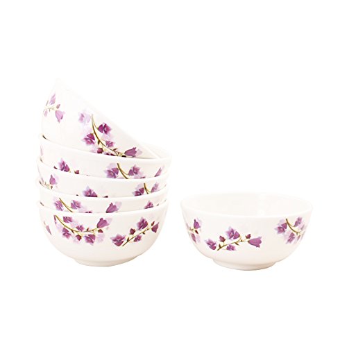 WHITE GOLD MELAMINE 4.5 INCH ROUND SMALL CURRY BOWL 1802 - PURPLE TULIP (6 Pcs)