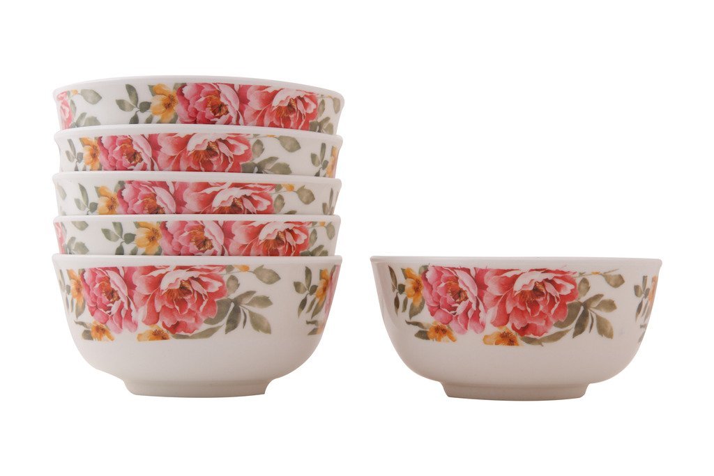 WHITE GOLD MELAMINE 4.7 INCH URMI CURRY VEG BOWL UR004 - ELEGANT ROSE (6 Pcs)