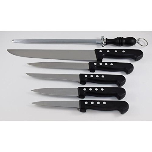Package Contents: 6-Pieces - Kitchen Knife Board Set, 1 Chef's knife, 1 Cook's Knife, 1 utility Knife, 1 Vegetable Knife, 1 Paring Knife, one cutting pad